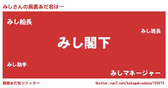 | ヘコむあだ名 | 『みしを』『みし(笑)』『酢こんぶ』 |