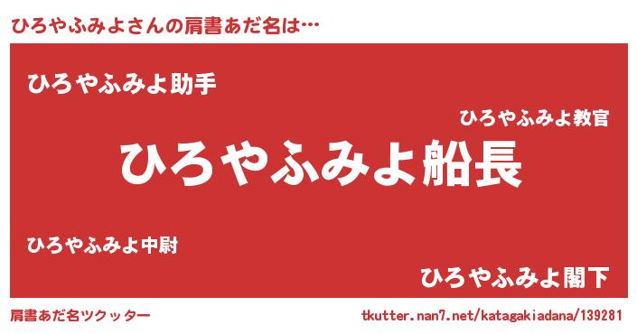 | 男性向けラノベタイトル風あだ名 | 『うちのひろやふみよが世界を掌握している!』 |