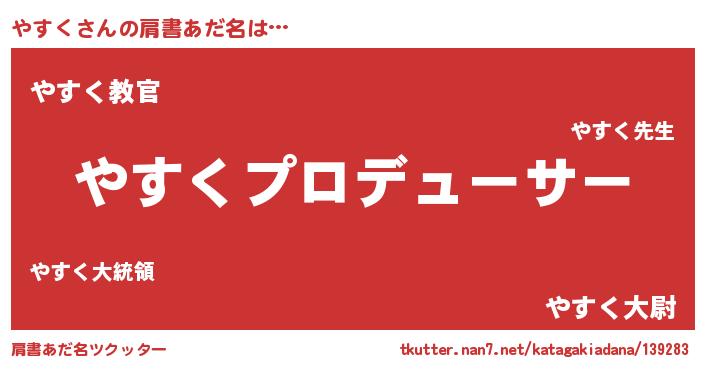 | 意味不明あだ名 | 『住所不定無職やすく(91歳)』 |