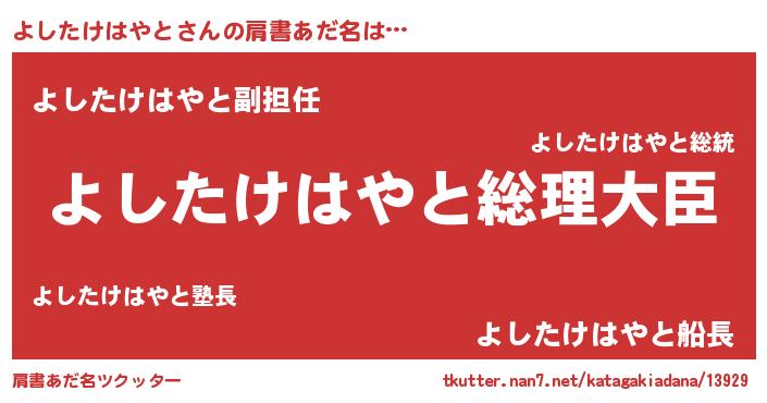 | ヘコむあだ名 | 『豆乳』『よしたけはやと(笑)』 |