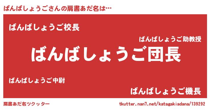 女子向けラノベタイトル風あだ名 | 『ばんばしょうごの卵を拾いまして』 |