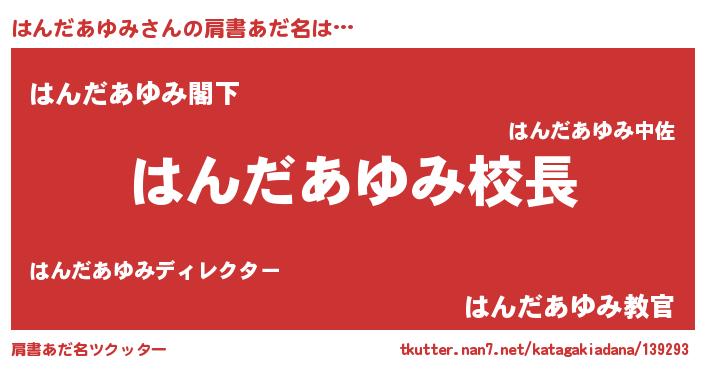 | ヘコむあだ名 | 『はんだあゆみ(爆)』『はんお』 |
