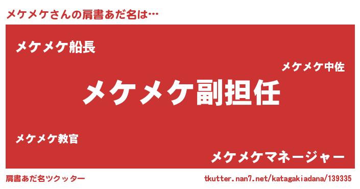 | 男性向けラノベタイトル風あだ名 | 『メケメケという概念が存在しない退屈な世界 』 |