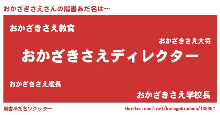 | 男性向けラノベタイトル風あだ名 | 『おかざきさえに滅ぼされるだけの簡単なお仕事です』 |