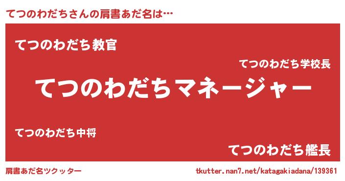 | ヒーロー風カッコイイあだ名 | 『仮面テツダー』『ネオテツノワダチ』 |