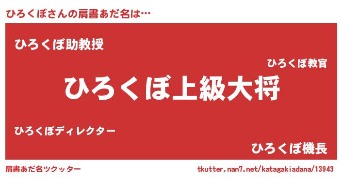 | 男性向けラノベタイトル風あだ名 | 『転生したらひろくぼだった件』 |