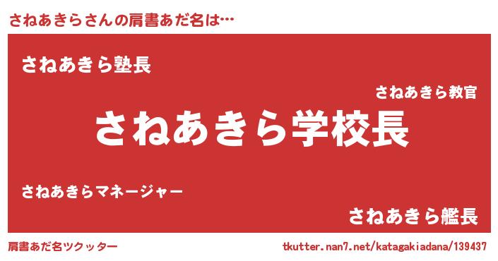 | 男性向けラノベタイトル風あだ名 | 『ノーゲーム・ノーサネアキラ』 |