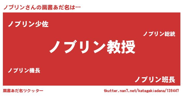 | 男性向けラノベタイトル風あだ名 | 『ノーゲーム・ノーノブリン』 |