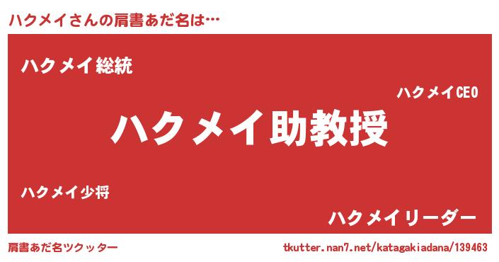 | 欧米人風あだ名 | 『ダニエルハクメイ』『ウサインハクメイ』 |