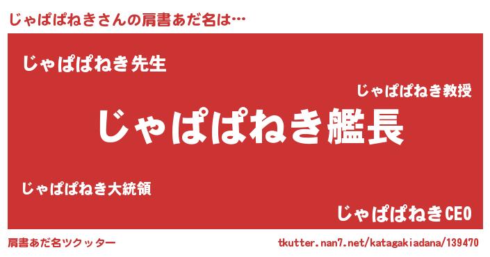 | 意味不明あだ名 | 『永久保存じゃぱぱねき』 |