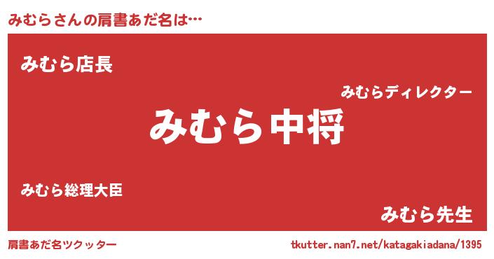 | 女子向けラノベタイトル風あだ名 | 『みむらの玉の輿計画!』 |