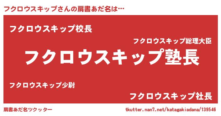 | 男性向けラノベタイトル風あだ名 | 『フクロウスキップの嫁は女の子じゃないと思った?』 |