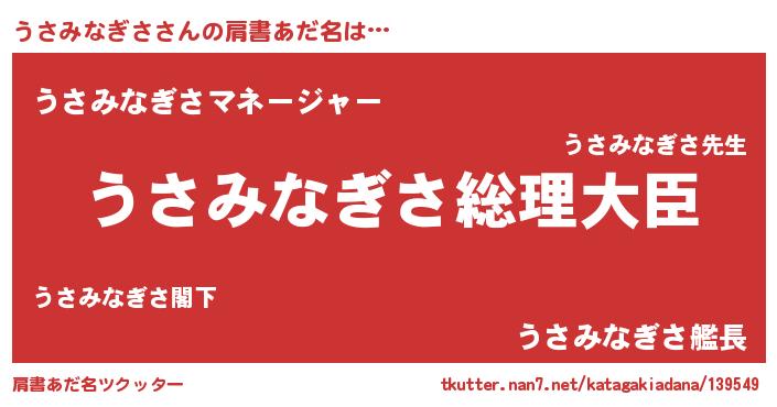 | ファンタジー風あだ名 | 『エターナルウサミナギサー』 |