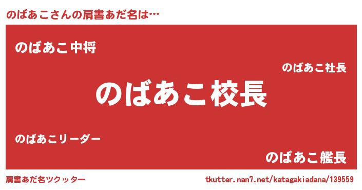| 男性向けラノベタイトル風あだ名 | 『のばあこという概念が存在しない退屈な世界 』 |