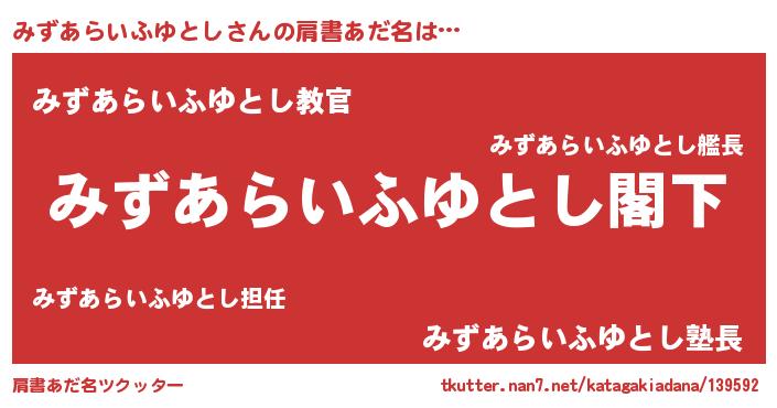 | 意味不明あだ名 | 『自称みずあらいふゆとし』 |