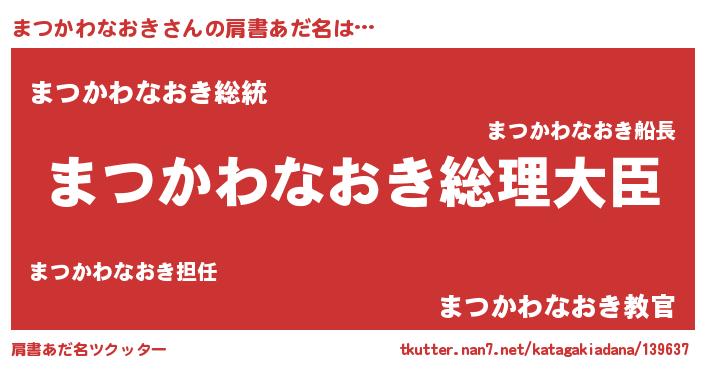 | 男性向けラノベタイトル風あだ名 | 『やはりまつかわなおきの青春ラブコメはまちがっている 』 |