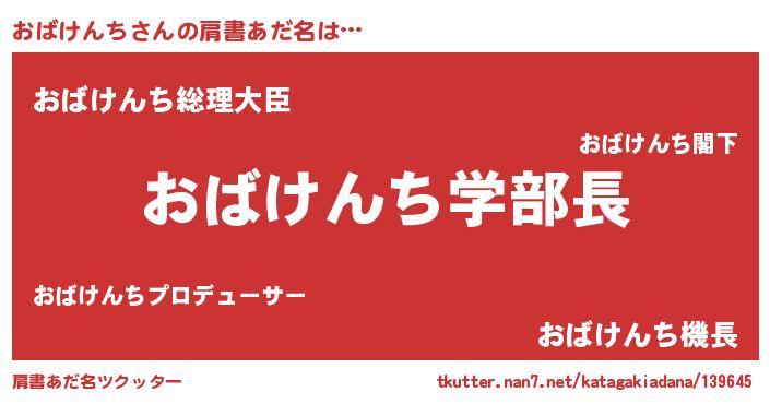 | 男性向けラノベタイトル風あだ名 | 『ノーゲーム・ノーオバケンチ』 |