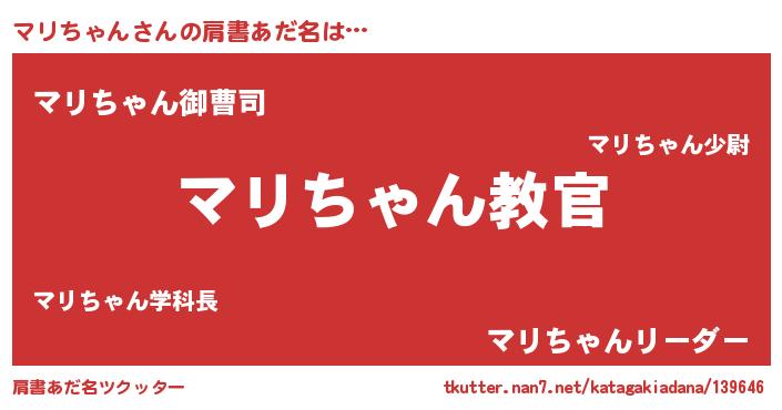 | 男性向けラノベタイトル風あだ名 | 『この素晴らしい世界にマリちゃんを!』 |