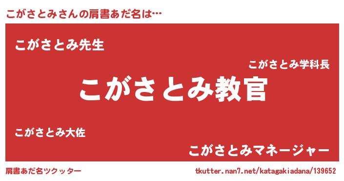 | ヒーロー風カッコイイあだ名 | 『仮面コガダー』『ネオコガサトミ』 |