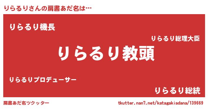 | 意味不明あだ名 | 『永久保存りらるり』『自称りらるり』 |