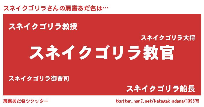 | 意味不明あだ名 | 『住所不定無職スネイクゴリラ(85歳)』 |
