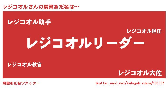 | 意味不明あだ名 | 『とにかく怪しいレジコオル』 |