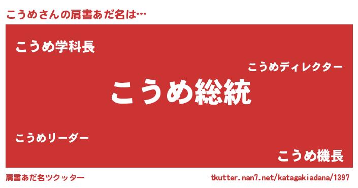 | 女子向けラノベタイトル風あだ名 | 『こうめなんてお断りですっ。』 |