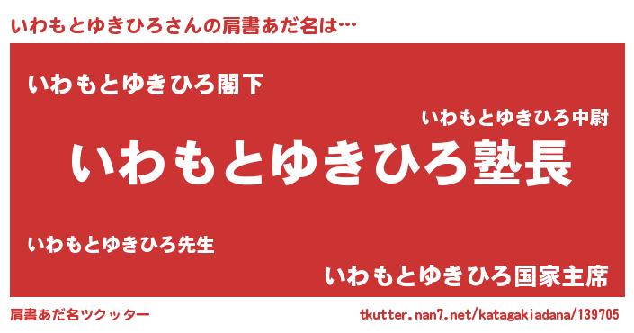 | 男性向けラノベタイトル風あだ名 | 『ダンジョンにいわもとゆきひろを求めるのは間違っているだろうか』 |