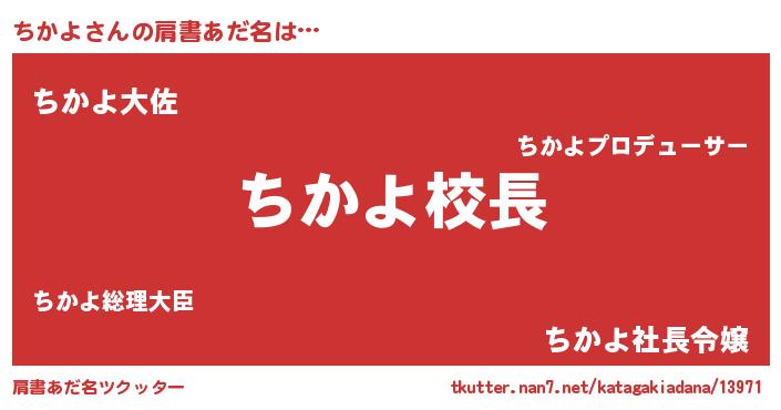 | ヒーロー風カッコイイあだ名 | 『ネオチカヨ』『スーパーチカヨ』 |
