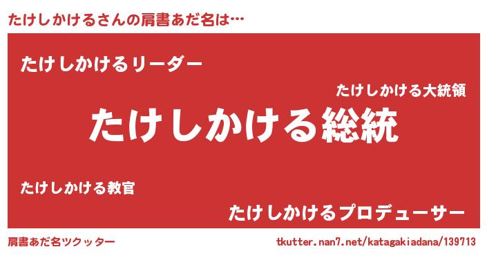 | ポケモン風あだ名 | 『タケセウス』『ヒタケシカケル』 |