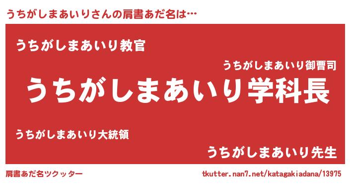 | 女子向けラノベタイトル風あだ名 | 『うちがしまあいり恋絵巻』 |