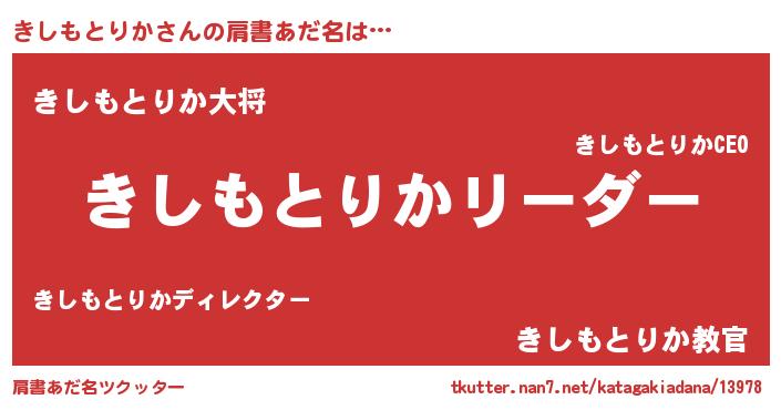 | 男性向けラノベタイトル風あだ名 | 『ダンジョンにきしもとりかを求めるのは間違っているだろうか』 |