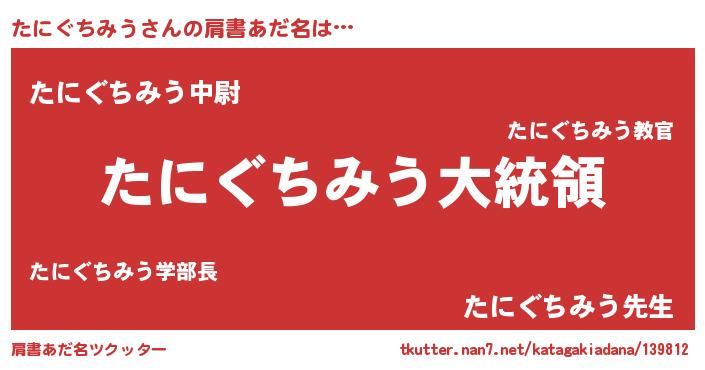 | 男性向けラノベタイトル風あだ名 | 『やはりたにぐちみうの青春ラブコメはまちがっている 』 |