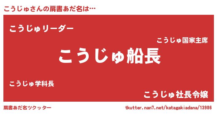 | 胡散臭い通販商品みたいなあだ名 | 『信頼と実績のサプリメント…その名も「こうじゅ」』 |
