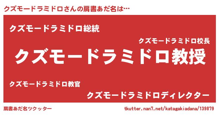 | 男性向けラノベタイトル風あだ名 | 『ノーゲーム・ノークズモードラミドロ』 |
