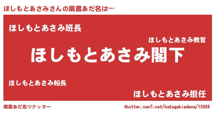 | ヘコむあだ名 | 『ほしお』『ほしもとあさみ(笑)』 |