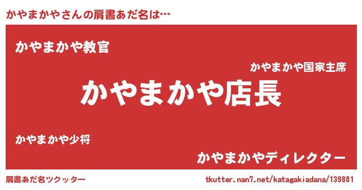 | 男性向けラノベタイトル風あだ名 | 『カヤマカヤアートオンライン』 |
