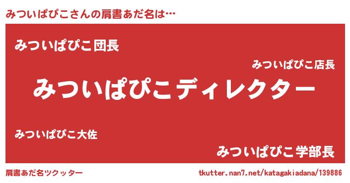 | ポケモン風あだ名 | 『ミツゴンZ』『ヒミツイパピコ』 |