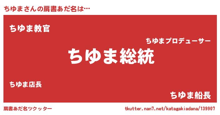| 欧米人風あだ名 | 『ケンブリッジちゆま』『マイケルちゆま』 |