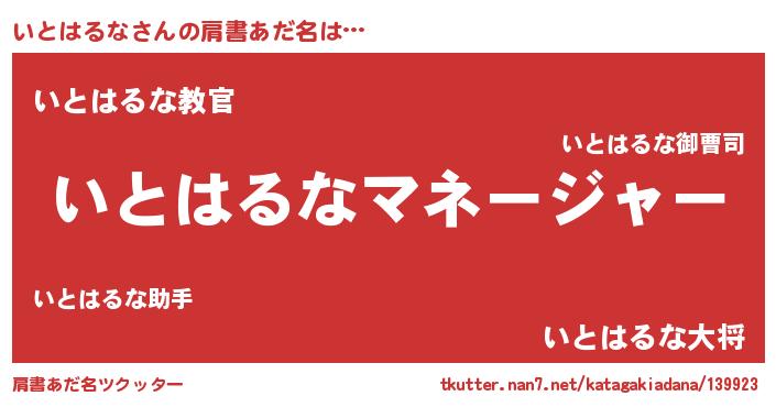 | ヒーロー風カッコイイあだ名 | 『仮面イトダー』『スーパーイトハルナ』 |