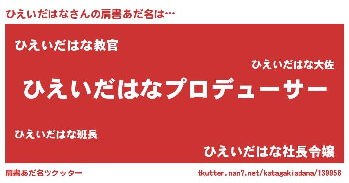 | 意味不明あだ名 | 『住所不定無職ひえいだはな(77歳)』 |