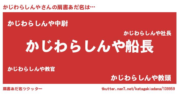 | 男性向けラノベタイトル風あだ名 | 『うちのかじわらしんやが世界を掌握している!』 |