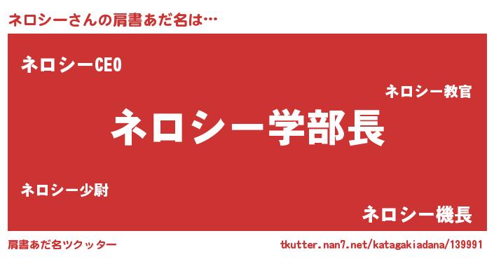 | 男性向けラノベタイトル風あだ名 | 『ノーゲーム・ノーネロシー』 |