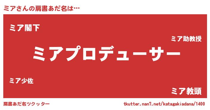| 意味不明あだ名 | 『自称ミア』『永久保存ミア』 |