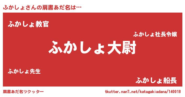 | ヒーロー風カッコイイあだ名 | 『仮面フカダー』『スーパーフカショ』 |