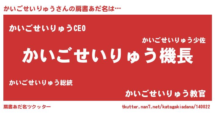 | ヒーロー風カッコイイあだ名 | 『スーパーカイゴセイリュウ』 |
