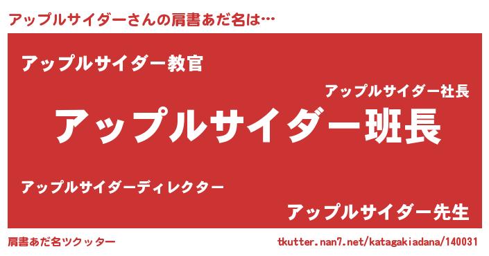 | 胡散臭い通販商品みたいなあだ名 | 『信頼と実績のネックレス…その名も「アップルサイダー」』 |