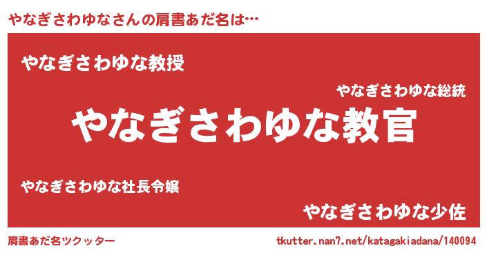 | 男性向けラノベタイトル風あだ名 | 『この素晴らしい世界にやなぎさわゆなを!』 |