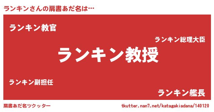 | 男性向けラノベタイトル風あだ名 | 『おまえをオタクにしてやるから、俺をランキンにしてくれ! 』 |
