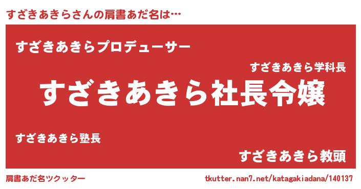 | 胡散臭い通販商品みたいなあだ名 | 『必ず成功する霊験あらたかなお札…その名も「すざきあきら」』 |